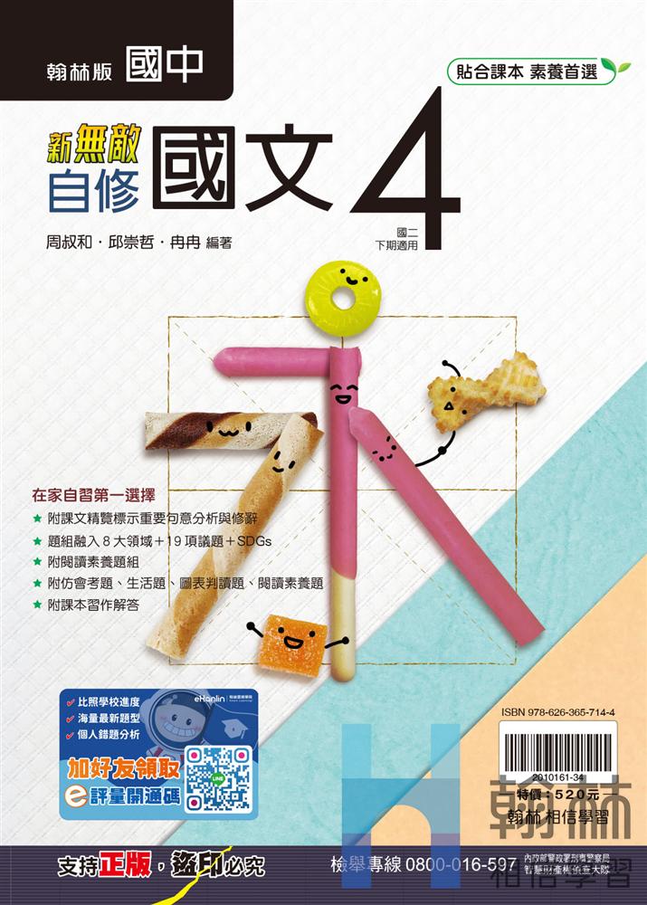 搭配翰林教材設計的自修(附習作解答)和講義,內容為統整課程精華與延伸課外補充,並提供試題練習。