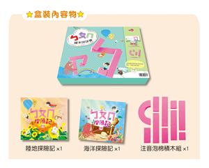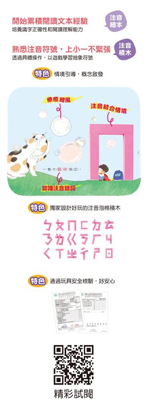 跟著奇幻的故事操作注音積木,拼出注音符號,同時累積閱讀經驗。