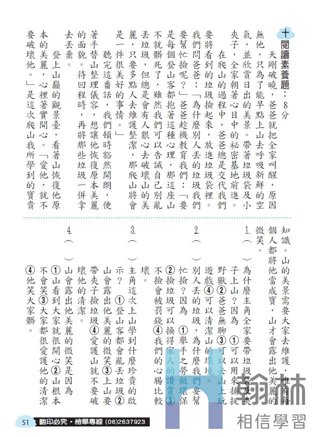 1️⃣ 多元優質素養題: 提升語文理解力與閱讀能力