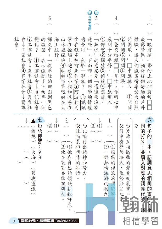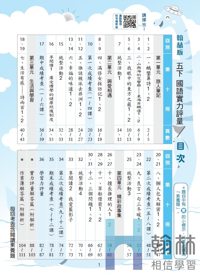 搭配翰林教材課次/單元的評量和考卷。