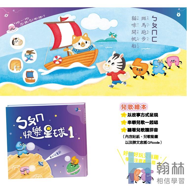 1.兒歌繪本(附贈貼紙):以故事方式呈現短文、串聯成兒歌,透過唱兒歌學習注音符號認讀、拼音、閱讀,培養聽說讀寫全方面能力。