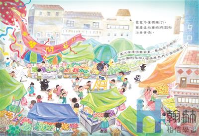 ★溫馨夢幻的插畫風格,帶出濃郁的市場人情味。