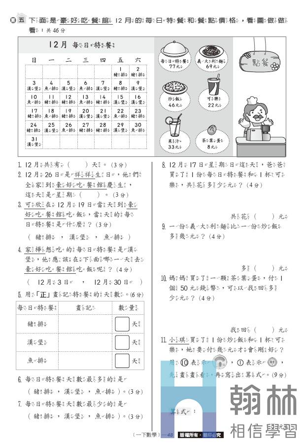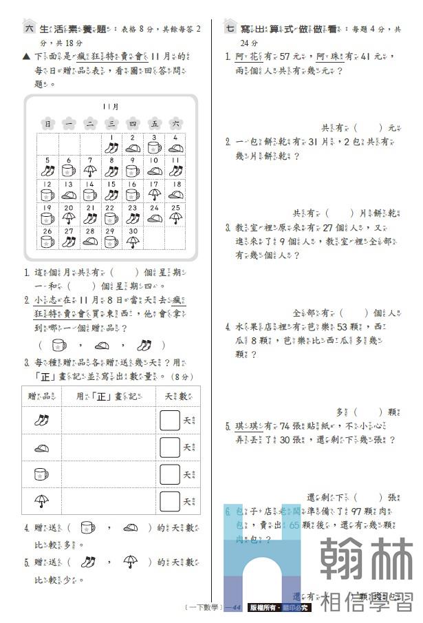 國小學習卷-數學(1下)