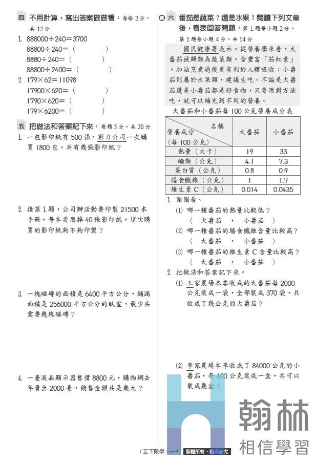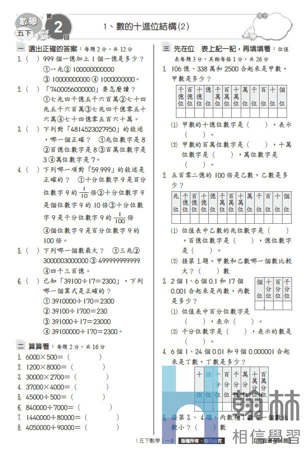 國小學習卷-數學(5下)