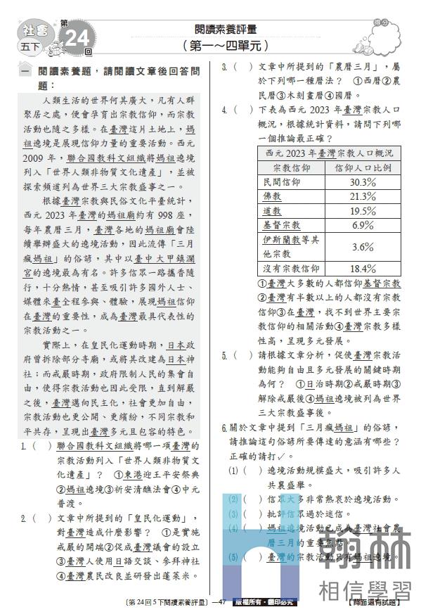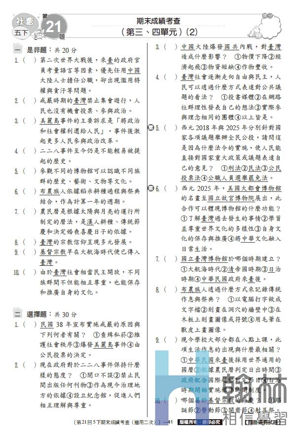 國小學習卷-社會(5下)