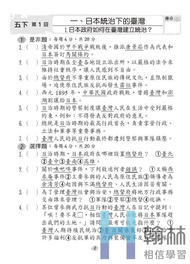 國小作業簿-社會(5下)