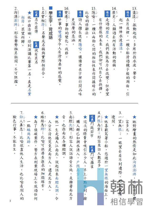 👍 強化各課學習重點,培養語文重要能力
