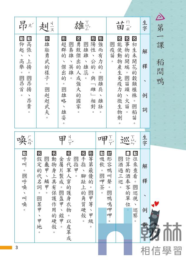 搭配翰林教材課次/單元的練習本。
