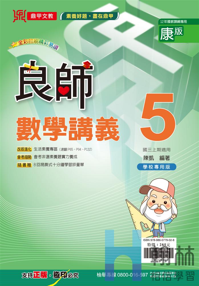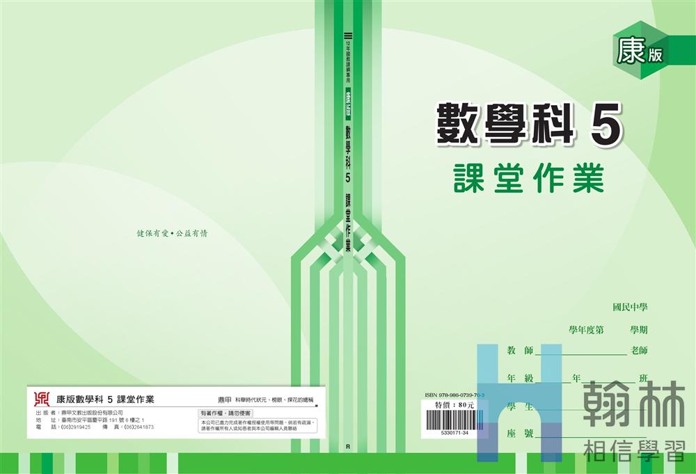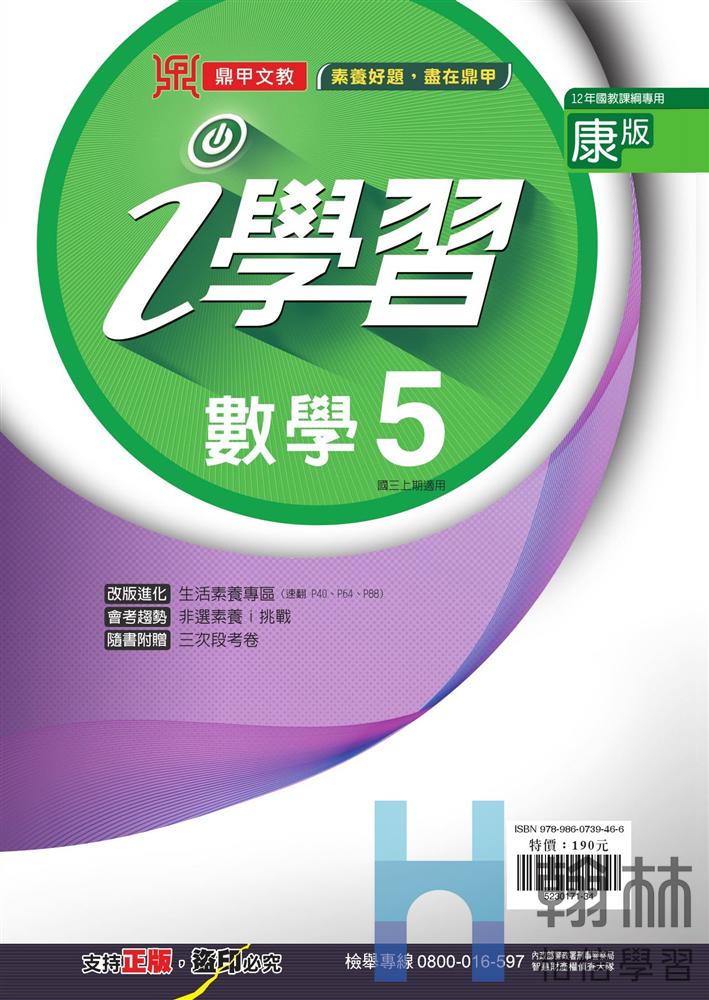 #重點整理完整,全彩印刷 ✨特色亮點: 1. 延伸範例 + 進階演練 2. [獨]歷屆試題特訓專區 相關產品 國中(適康)-課堂作業-數學(5)[綠] NT$80 國中(適康)-i學習-數學(5) NT$190NT$152