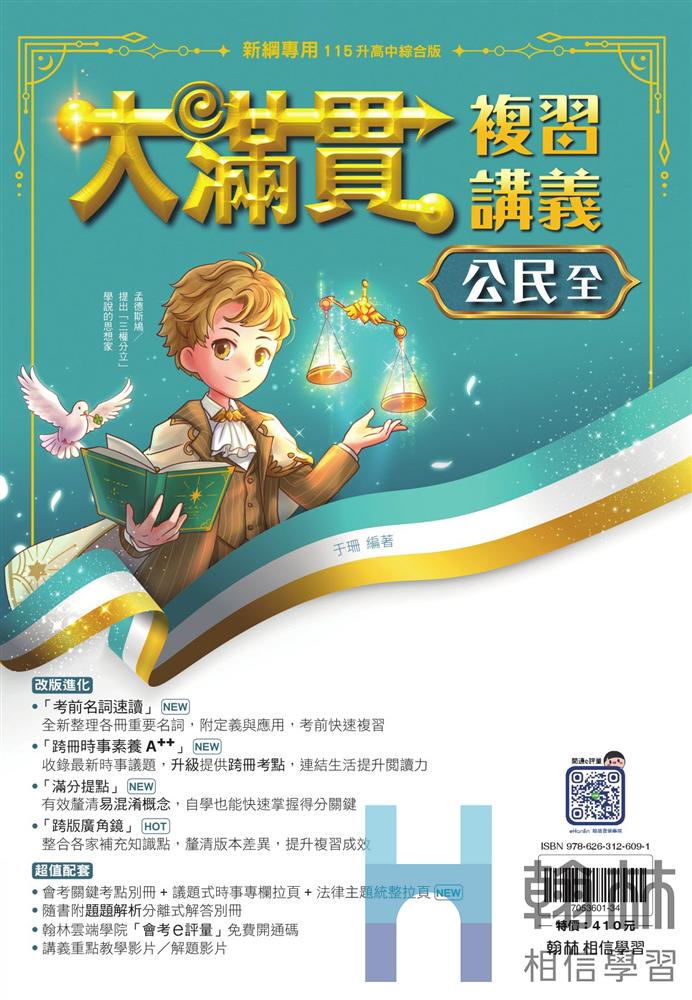 1️⃣「會考關鍵考點」別冊、「議題式時事專欄」+全新「法律主題統整」拉頁、線上:教學影片/解題影片